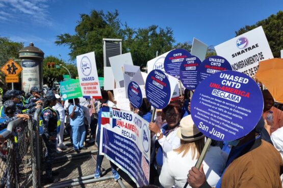 Santo Domingo.– Gremios de enfermería se concentraron la mañana de este lunes frente al Palacio Nacional, en busca de que el Gobierno cumpla con una serie de acuerdos laborales que, aseguran,