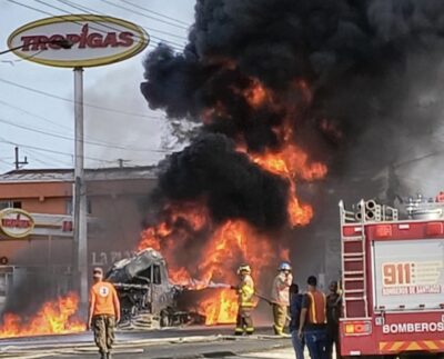 Dos personas resultan con heridas tras explosión de tanquero en autopista Duarte