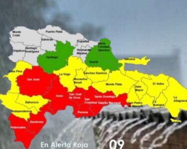 Santo Domingo. – El Centro de Operaciones de Emergencias (COE) mantiene 08 provincias y al Distrito Nacional en alerta roja, aumenta 13 en amarilla y mantiene 03 en verde, debido a que la tormenta tropical Melissa, No. 13 de esta Temporada Ciclónica 2025, fue localizada aproximadamente a unos 485 kilómetros al suroeste de Puerto Príncipe (Haití).